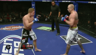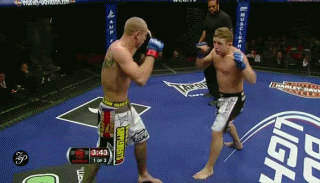 Contrast the Horodecki gif to the one versus Oliveira to the left: now, the plunging knee is dealt deep in the pocket after he sets up his advance with a long right hand. He wisely retreats when Oliveira tries to stick to him and charge forward for control.