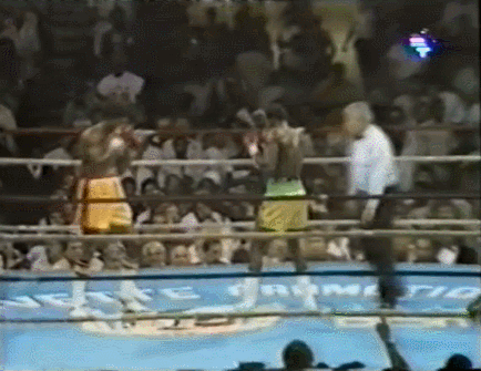 This is McCallum pouncing on the stunned Julian Jackson after knocking him down. Note how McCallum constantly sticks his left hand in Jackson’s face, but only really sits down on every third punch or so. This is the basic idea behind the pawing jab, a tool that can turn even a slow, methodical fighter into a volume striker. The beauty of the punch is that it requires absolutely no commitment to throw, making it the perfect set-up punch, and a tool with many, many uses.
