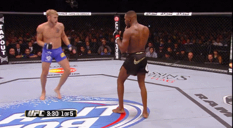 (A note on the strategy contained herein: there are aspects of Jones’ style that could be exploited by fighters from a wide range of stylistic backgrounds and technical aptitudes, but this article is intended to lay out the rout by which Daniel Cormier, with his particular skillset, could defeat the champion. Therefore Jones’ tendency to place his hands on the mat, for example, will not be featured, as the prospect of the 5’11” Cormier pulling guard doesn’t seem very likely.)