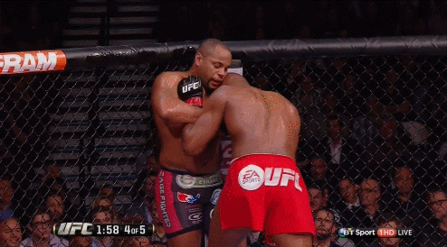 Jones, used to facing the same combination of rudimentary lunges and crude swings, has adopted a similar attitude to in-fighting–but there is a problem. It didn’t take Daniel Cormier long to catch on.
