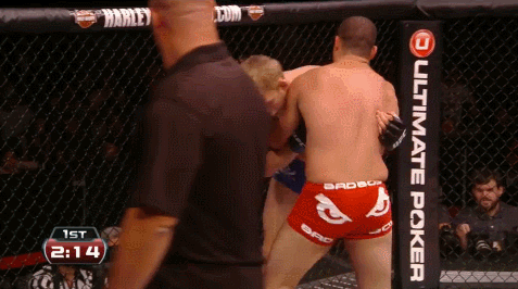 When a short fighter changes levels poorly–by bending his back and looking down at the floor instead of using his hips and legs to get low–he is completely at the mercy of a taller opponent. This is when Gustafsson can afford to simply stay tall, maintain his posture, and fire uppercuts and knees into his opponent’s face. With a great height disparity, there is almost no adjustment required in the throwing of these strikes. The knee is able to land well within its power arc, and the hands are naturally placed to throw uppercuts with great speed and accuracy.