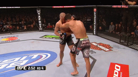 10. . . . and smashes his right knee, Thai-style, into Penn’s ribs.