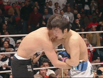 7. The Pride lightweight champion goes reeling all the way to the ropes.