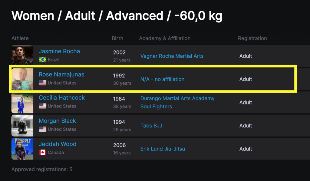 Though this appeared official, Namajunas has yet to comment on her upcoming grappling appearance. Her husband and coach Pat Barry confirmed her participation when asked by Bloody Elbow earlier today.