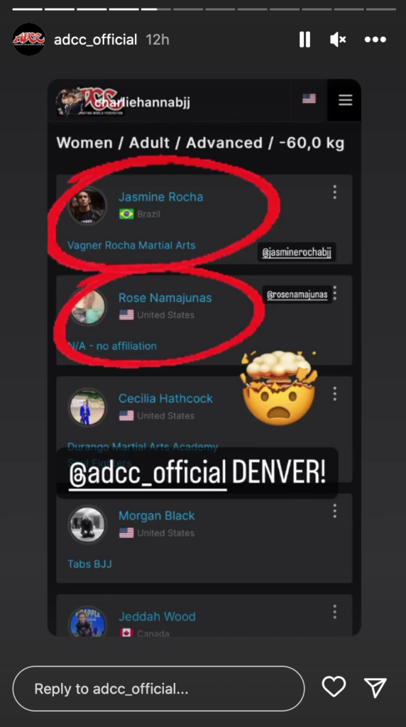 The ADCC promotion has long enjoyed a close relationship to the UFC. Chael Sonnen famously rolled with Aussie superstar Craig Jones at the 2017 ADCC’s, and several former ADCC champions like Rodolfo Vieira and Vinny Magalhaes have taken their ground game to the cage. Namajunas herself is a BJJ brown belt, with a 45% submission rate in her MMA career as of publishing.