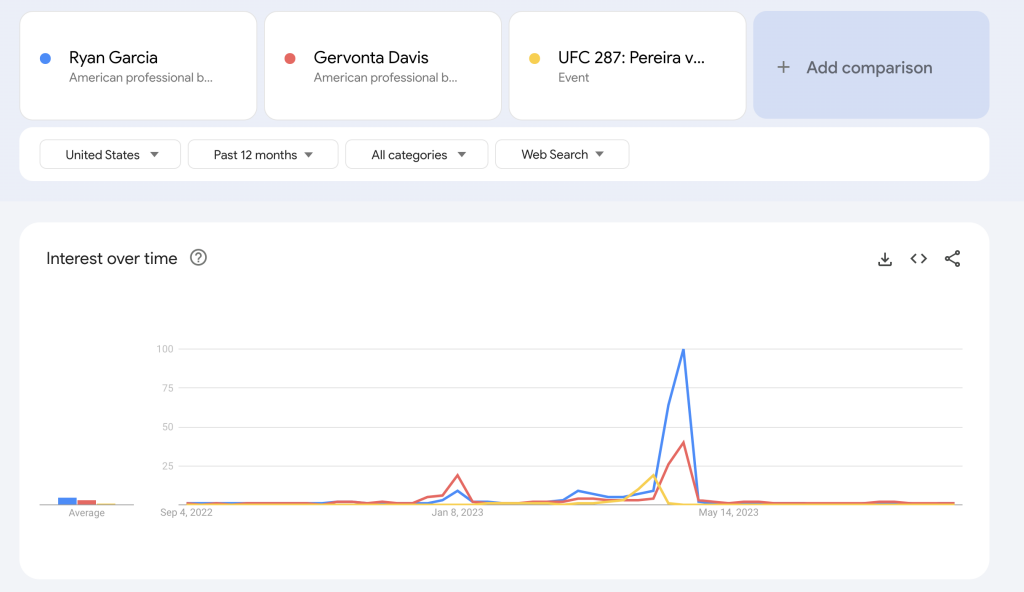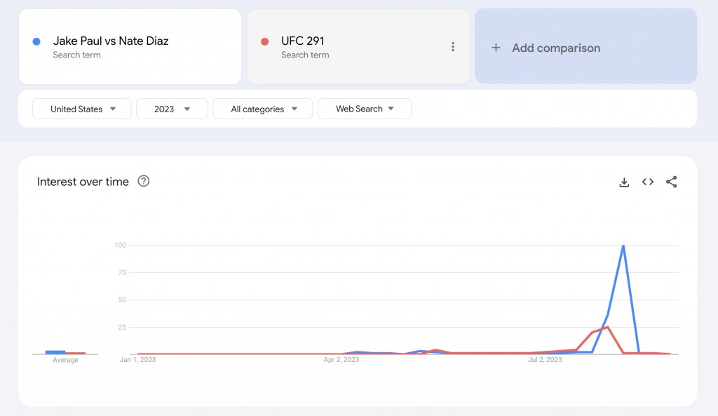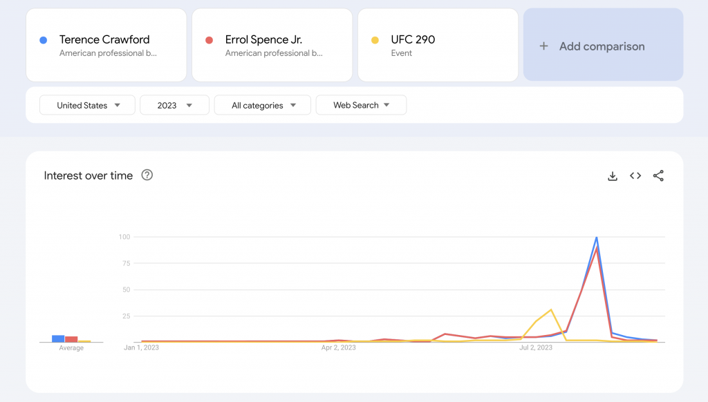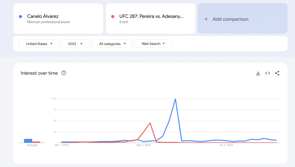 A quick survey of Google Trends gives some quantitative data to shore up Luke claim about boxing kicking the UFC’s a** this year: